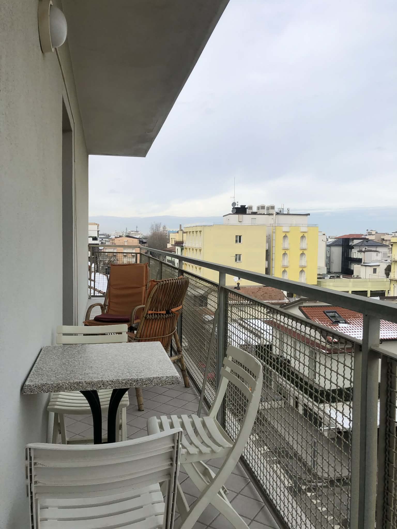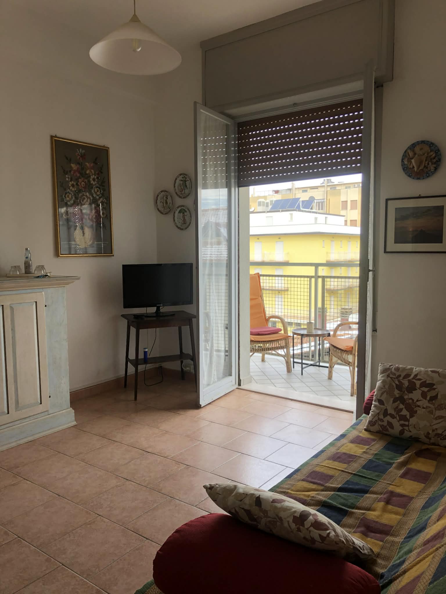 Bilocale posto al quarto piano di un condominio con ascensore di nuova generazione, a 80 metri dal mare. La zona in cui si trova è centrale. Tramite la porta di ingresso si accede ad un disimpegno che conduce alla camera da letto con matrimoniale e letto singolo, al cucinotto con portafinestra che da sul balcone, bagno e soggiorno pranzo con divano letto.
