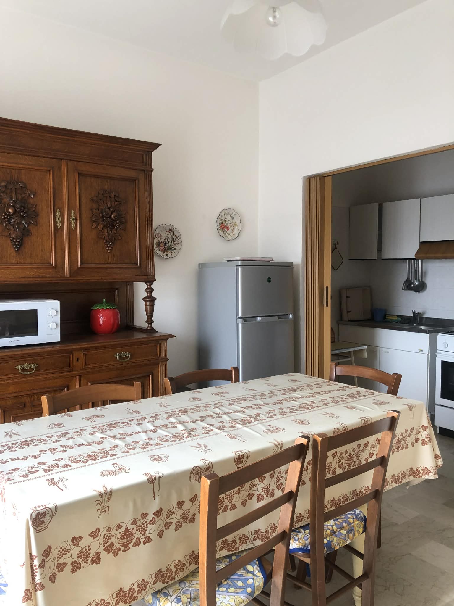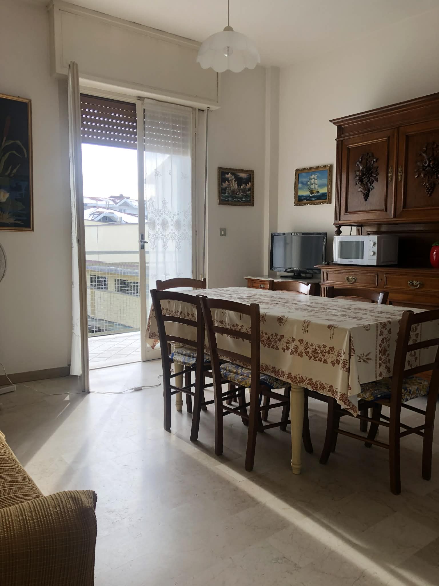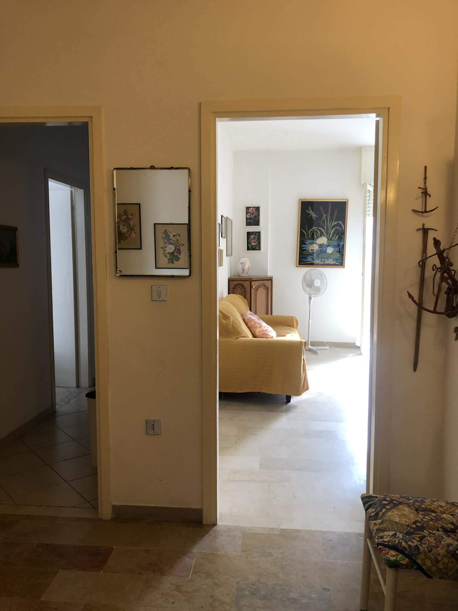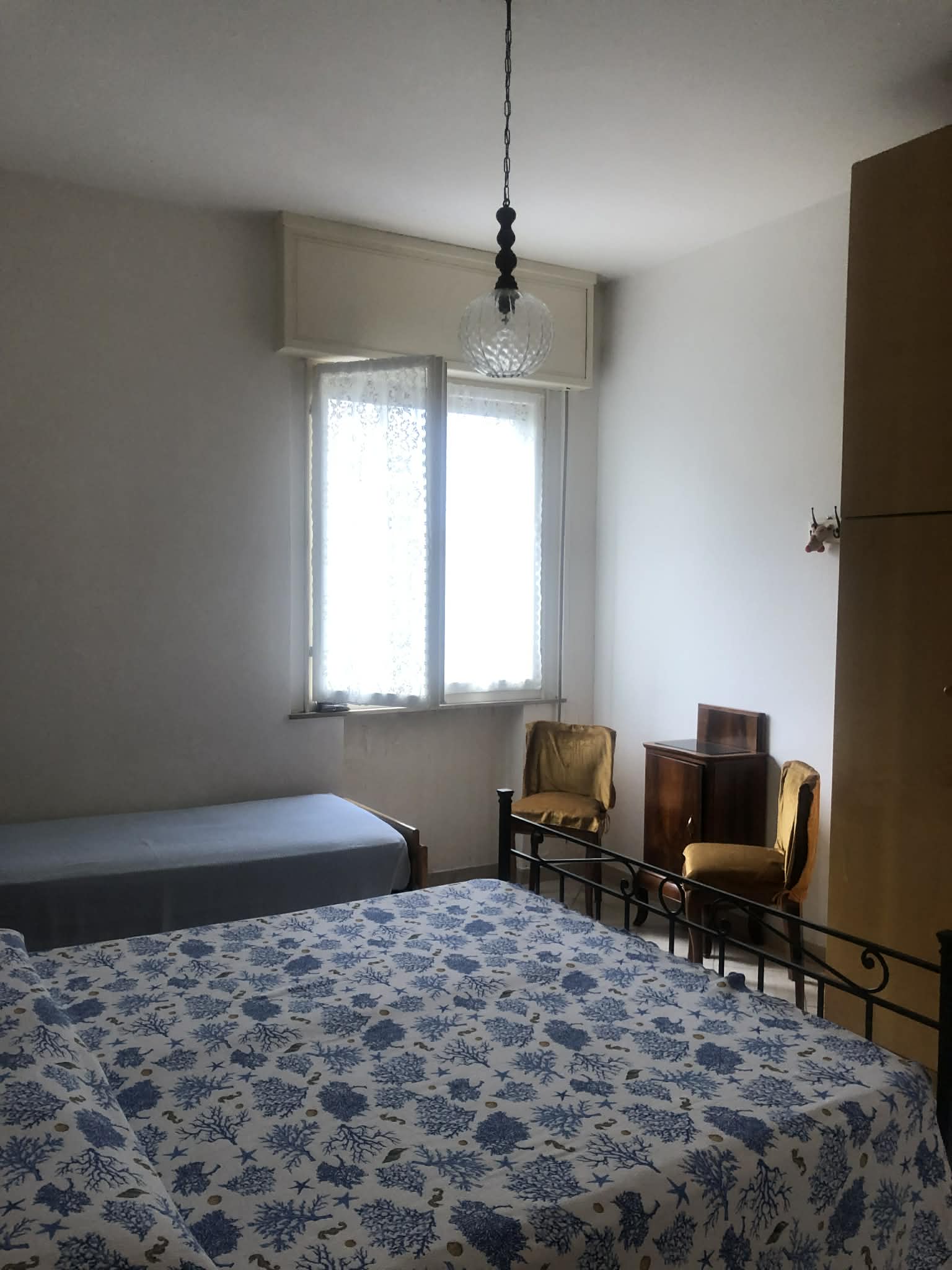 Trilocale in condominio con ascensore di nuova generazione, zona residenziale vicina alle vie del centro, a circa 80 metri dal mare. L’ appartamento è così composto: ingresso con accesso sia alla zona notte che alla zona giorno, nella zona notte tramite un corridoio si accede alle due camere da letto ed al bagno. Il bagno è dotato di lavatrice e box doccia. La camera da letto più grande oltre ai vari arredi si trovano un letto matrimoniale e uno singolo, mentre in quella più piccola due letti singoli. La zona giorno è composta da: soggiorno pranzo con adiacente cucinotto.